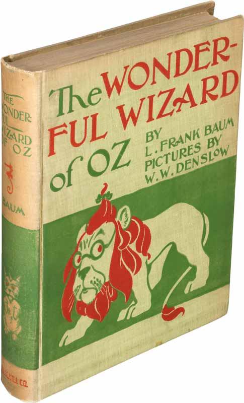 Fittingly, one prominent item from the sale is a first edition with first state text and plates of L. Frank Baum’s The Wonderful Wizard of Oz (1900), estimated at $20,000 and up.