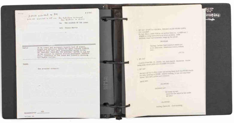 With an estimate of $500-$700, the 1988 document is a 33-page typed script in binder, with an 18-page synopsis of the original novel by Thomas Harris. Hackman worked with Orion Pictures to adapt the nove- for film as a follow up to 1986's Manhunter which was also based on a Harris novel. Hackman was to be the director and star too, possible even as Hannibal Lecter but eventually decided not to go ahead with the project.