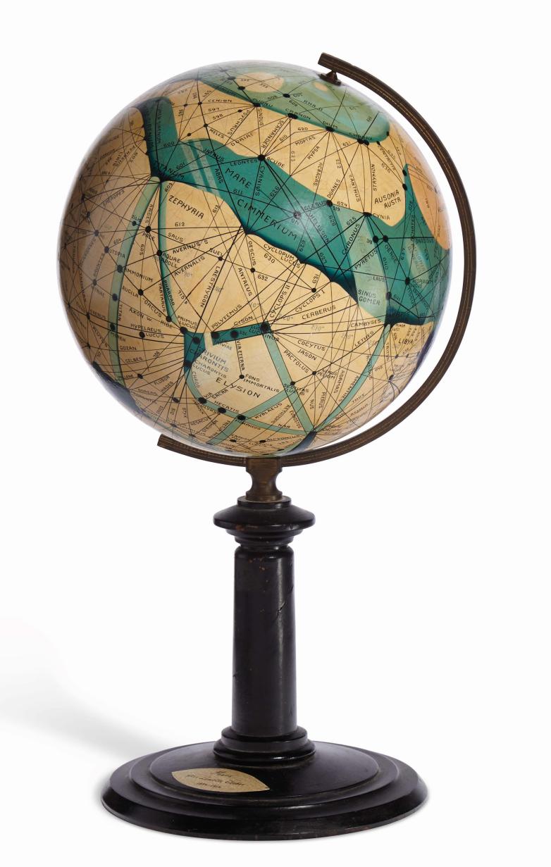 One of the Brun globes sold at Bonhams in 2012 for $50,000. Daniel Crouch Rare Books also appears to have one available, for a similar amount, and their research has traced seven institutional owners of Brun globes worldwide. Which makes the one headed to auction next week — different from both the Bonhams and the Crouch specimens — one of the few left in private hands. It is estimated at $30,000-50,000.