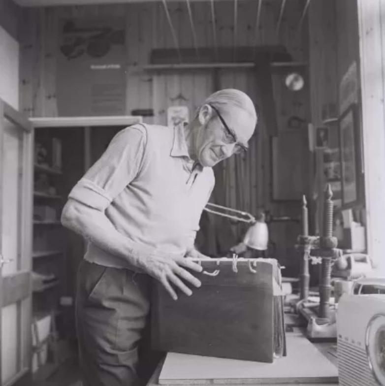 Powell’s career began in the 1930s when he worked initially with leading bookbinder Douglas Cockerell (1870-1945) before establishing his own bindery in Froxfield in 1947. During that time Powell worked on the conservation and re-binding of the Book of Kells for Trinity College Dublin and in 1966 when the River Arno in Florence flooded and damaged thousands of books inthe Biblioteca Nazionale Centrale di Firenze, Powell was closely involved in the conservation of many valuable items.
