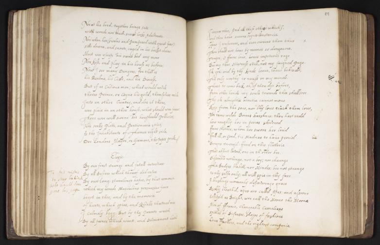 "Elegie" by John Donne with marginal note, Melford Hall Manuscript (Egerton MS 3884)