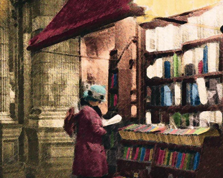 A new edition of Death of a Bookseller (1956) has been published by the British Library. The cover features a colorized version of the ca. 1935 print, Wet Winter Evening and a Book Lover in Bloomsbury.