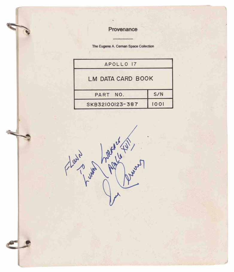 Gene Cernan’s Apollo 17 Lunar Module Data Card Book Sold for $73,219