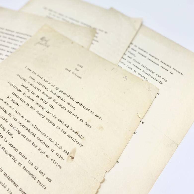 Speaking of that script, the release of this recording comes hot on the heels of the news that rare book dealer Brian Cassidy of Type Punch Matrix recently discovered a previously unknown original carbon typescript of “Howl,” the exact carbon struck on Ginsberg’s own typewriter for what came to be known as the fifth draft. It is that version of the poem that Ginsberg read at Reed, sometimes even skipping over parts he would later revise.