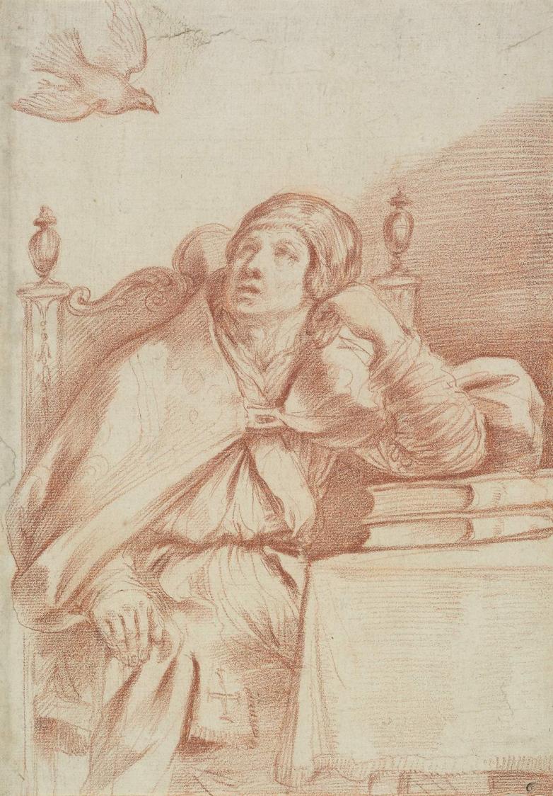 Giovanni Francesco Barbieri, Il Guercino, The Holy Spirit Appearing to St. Gregory, red chalk, late 1640s. Sold for $21,250.