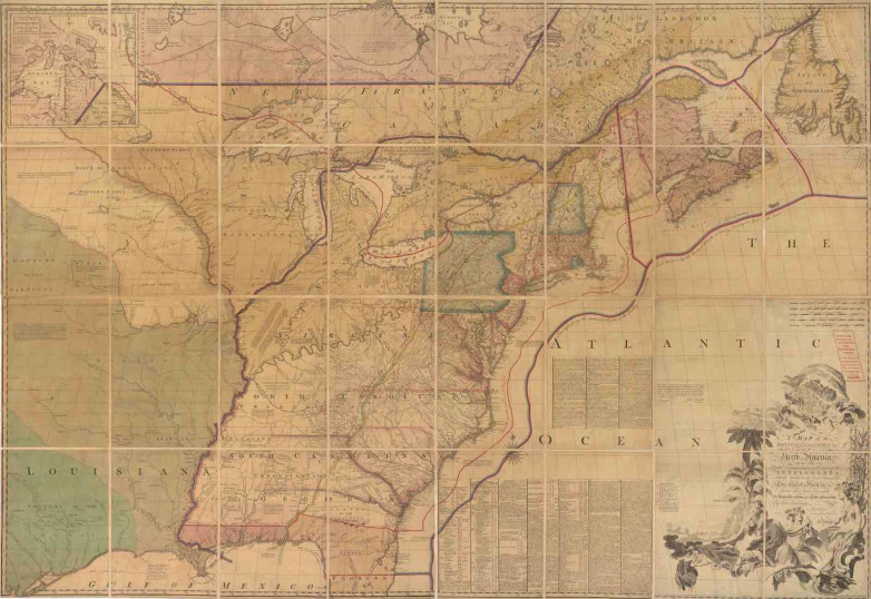 Annotated map of the British Colonies in North America with the roads, distances, limits and extent of the settlements, ca. 1775.