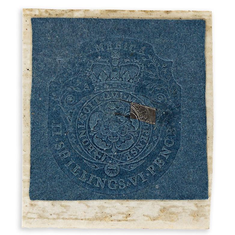 Stamp from the Stamp Act of 1765, circa 1765. Estimate $6,000-9,000