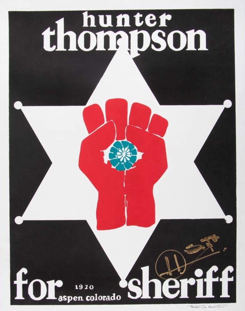 Finally for Thursday's sales, Fine Literature with Beats, Bukowski & the Counterculture at PBA Galleries, in 416 lots. A silkscreen poster from Hunter S. Thompson's 1970 run for sheriff of Pitkin County, Colorado, signed by artist Thomas W. Benton and with Thompson's initials in gold (by Benton) is estimated at $5,000–8,000. An original watercolor portrait of Allen Ginsberg by Gordon Stuart could sell for $4,000–6,000, and a first edition of Harry Potter and the Philosopher's Stone in wrappers is estimated at $3,000–5,000. Also included here is a complete set of Dell's Ten Cent Books (36 titles in 45 volumes), estimated at $1,500–2,500.