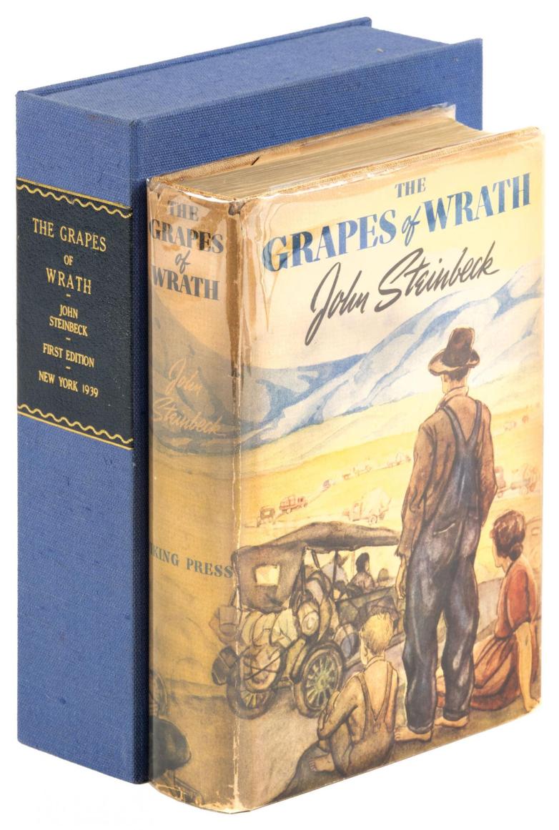 An inscribed presentation copy of Steinbeck's Grapes of Wrath (1939) signed by the author to author and reporter Vincent Sheean could sell for $15,000–25,000. Other lots include a first edition of Johnson's Dictionary (1755), estimated at $8,000–12,000 and a first edition of Webster's American Dictionary of the English Language (1828), at $5,000–8,000.