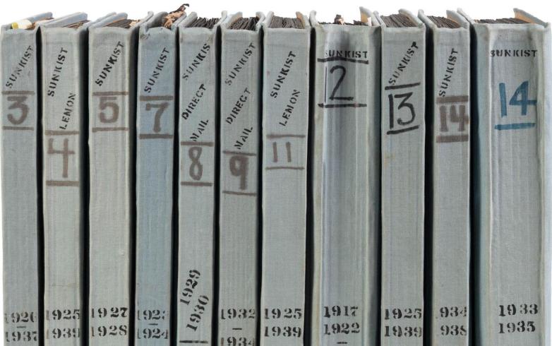 Volumes from an eighty-volume archive of advertisements for Sunkist Growers, Inc., offered at PBA Galleries this week.