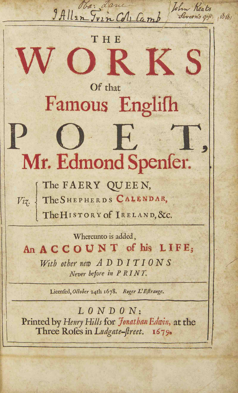 "Books such as Keats's own copy of Spenser remind us all how much history can be quietly sitting on a shelf, waiting to be recognized and reintroduced to the world of book collecting,” said Darren Winston, Senior Vice President and Co-Head of the Books and Manuscripts department. “Books should make you stop and think, or gasp, or sometimes think you have a direct line to the history of literature, as holding this copy of Spenser does. A truly remarkable and unique book."