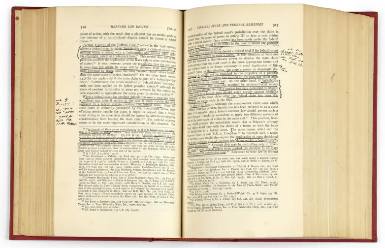 • Ginsburg’s personal copy of the 1957-58 Harvard Law Review, the year that she was a member, heavily annotated by her. Estimate: $2,500 - 3,500.