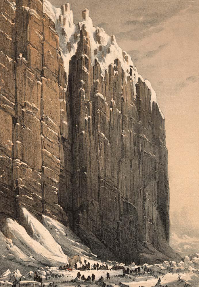 A chromolithograph of William Henry Browne’s “Noon in Midwinter,” from Ten Coloured Views Taken During the Arctic Expedition of Her Majesty’s ships “Enterprise” and “Investigator”(1850).