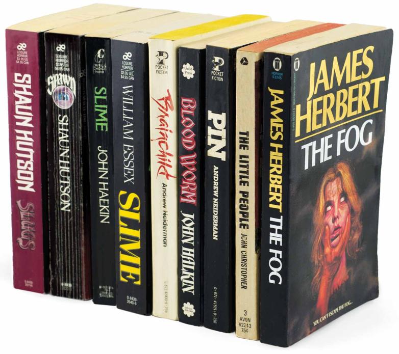 Giant carnivorous cockroaches, demonic children, haunted houses, possessed dolls, killer clowns, Nazi leprechauns, and crabs on the rampage: all these and more lurk beneath the garish covers of a publishing category that flourished from approximately 1967 to 1991, bookended by the runaway bestseller Rosemary’s Baby and the successful film adaptation of Thomas Harris’s Silence of the Lambs. Fed by a constant stream of page-turners by Stephen King, Anne Rice, Dean R. Koontz, and V. C. Andrews, this genre thrived in the hothouse climate of Satanic Panic, Video Nasties, and the continual cultural fallout of the Swinging Sixties, delighting and terrifying a generation.