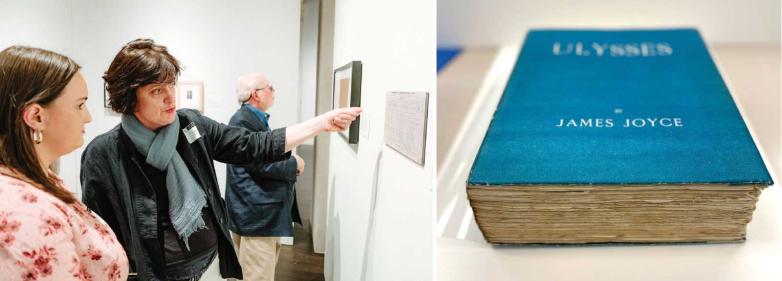 Like Weaver, Sylvia Beach supported Joyce financially and as publisher of Ulysses. She gave him an astonishing 66 percent of the net profits on the first edition, and she quietly paid the enormous printing bill incurred by dint of the copious revision and extension to the text that Joyce made to Ulysses when it was in proof. Her tiny notebook, in which she meticulously recorded subscriptions for the first edition, is on display, and serves as a potent reminder of her careful labor behind the scenes.