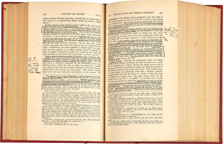 Ruth Bader Ginsburg's annotated copy of the 1957-58 Harvard Law Review, Volume 71. Cambridge, MA